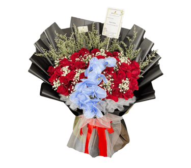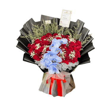 Kami adalah penjual karangan bunga dan parsel untuk berbagai kebutuhan, seperti nikahan, kematian, dan hari raya. Pilih dari katalog kami yang beragam dengan warna biru cerah.