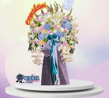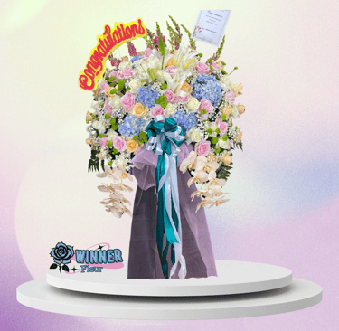 Kami adalah penjual karangan bunga dan parsel untuk berbagai kebutuhan, seperti nikahan, kematian, dan hari raya. Pilih dari katalog kami yang beragam dengan warna biru cerah.