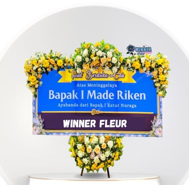 Papan Bunga Duka Cita: Rangkaian bunga yang dipasang pada papan besar dengan pesan belasungkawa dari pengirim. Ukuran dan desainnya bervariasi, seperti yang ditawarkan oleh Prestisa dengan ukuran 1,25m x 2m dan pengerjaan 3–4 jam. prestisa.com