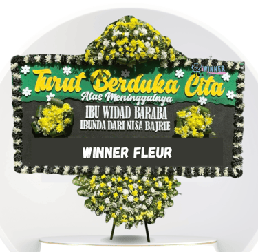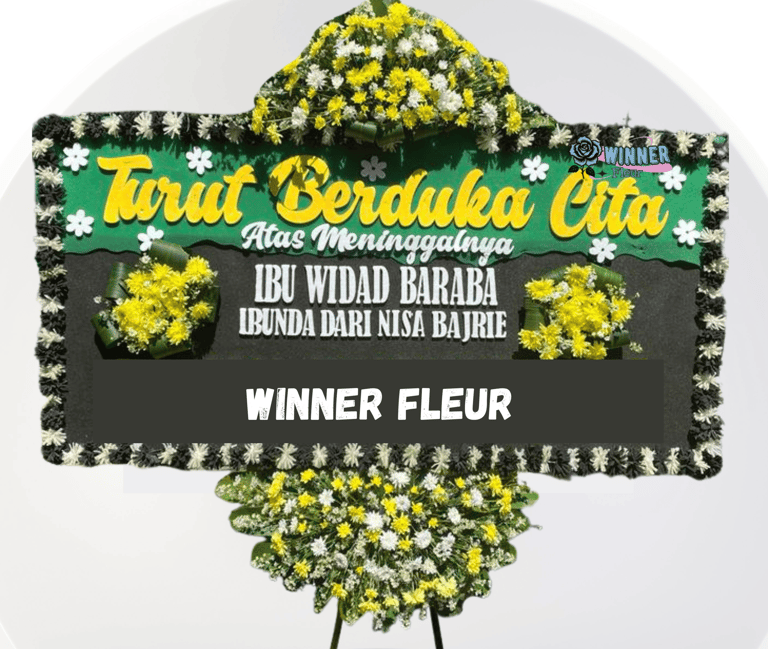 Ini adalah bentuk paling umum dan ikonik. Papan besar bertuliskan “Turut Berduka Cita” disertai nama pengirimnya. Biasanya dikirim oleh perusahaan, organisasi, atau kolega profesional.