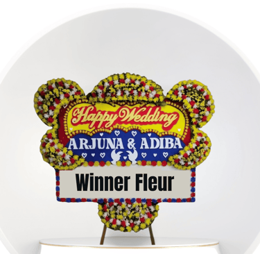 Karangan bunga "Happy Wedding" bukan sekadar hiasan, melainkan simbol ucapan selamat dan doa restu dari keluarga, teman, atau kolega kepada pasangan pengantin. Rangkaian bunga ini mencerminkan kebahagiaan, cinta, dan harapan akan kehidupan pernikahan yang harmonis dan penuh berkah. Di Gedung Asy-Syifa, karangan bunga ini ditempatkan di area strategis, seperti pintu masuk atau dekat pelaminan, sehingga menjadi sorotan utama dan menambah keindahan dekorasi.