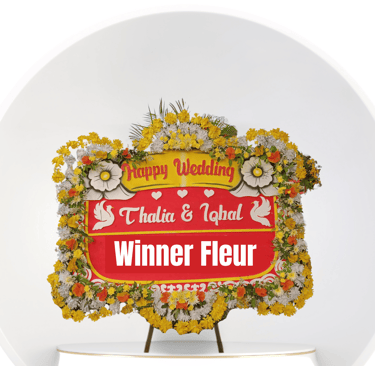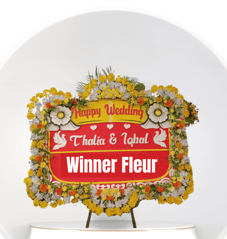 Karangan bunga "Happy Wedding" bukan sekadar hiasan, melainkan simbol ucapan selamat dan doa restu dari keluarga, teman, atau kolega kepada pasangan pengantin. Rangkaian bunga ini mencerminkan kebahagiaan, cinta, dan harapan akan kehidupan pernikahan yang harmonis dan penuh berkah. Di Skenoo Hall Emporium Pluit, karangan bunga ini ditempatkan di area strategis, seperti pintu masuk atau dekat pelaminan, sehingga menjadi sorotan utama dan menambah keindahan dekorasi.