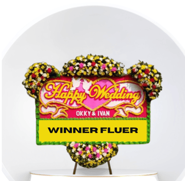 Karangan bunga papan adalah bentuk ucapan paling umum yang dikirimkan oleh keluarga, rekan kerja, hingga perusahaan kepada pasangan pengantin. Tampil dengan desain besar, mencolok, dan berwarna cerah, papan bunga ini biasanya diletakkan di luar lokasi acara sebagai bentuk ucapan terbuka kepada publik.Standing Flower