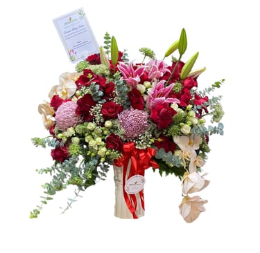 Memberikan ucapan selamat menikah menjadi lebih spesial dengan papan bunga yang elegan, cocok dikirim ke lokasi acara pernikahan di ballroom, rumah ibadah, atau venue perayaan.Papan Congratulations / Selamat dan Sukses